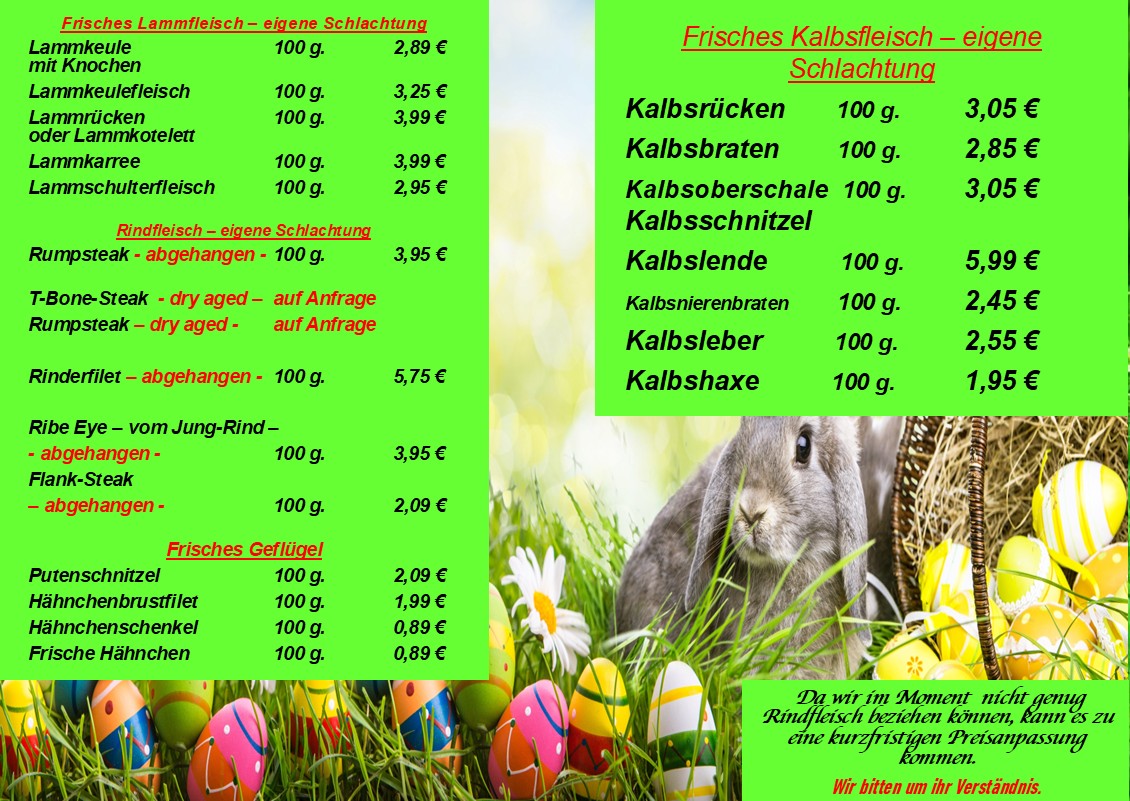 Für Ihr Osterfest - bitte Vorbestellung bis zum 25.03.2026
